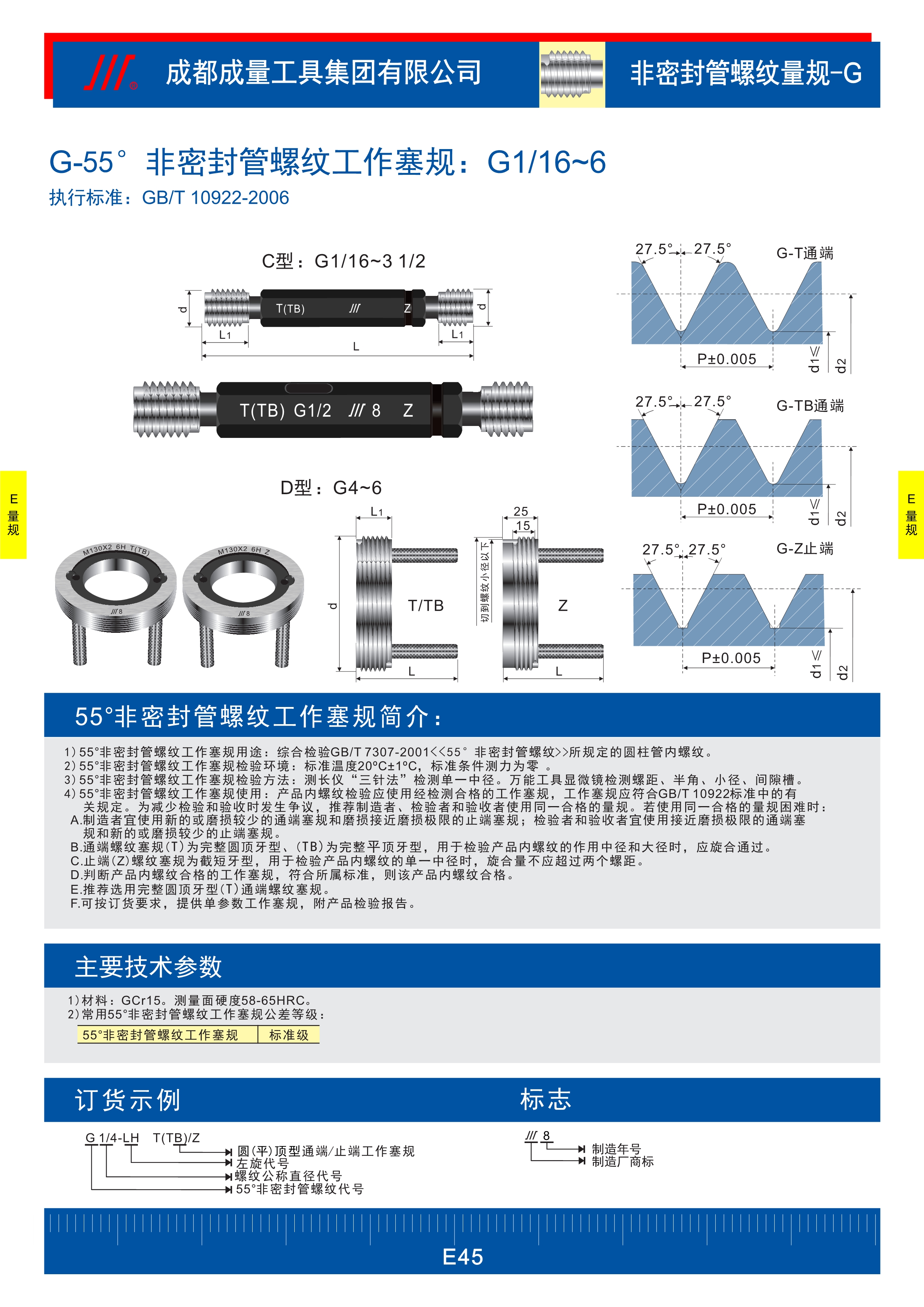 G-55°非密封管螺纹工作塞规